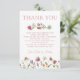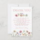 Procurando um cartão de agradecimento de chá de bebê com tema de flores silvestres? Não procure mais! Este cartão de agradecimento com tema de flores silvestres seria a adição perfeita para a celebração do seu chá de bebê. Este tema apresenta flores de jardim em aquarela rústica e folhagens. Personalize todo o texto para acomodar seu evento. Esta coleção contém convites, cartões de agradecimento, inserts, jogos e decorações para todas as necessidades do seu evento!