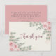 Envie gratidão sincera com este cartão de agradecimento de chá de noiva com flores rosadas elegantes, projetado para complementar perfeitamente o convite correspondente. Com um fundo de aquarela em marfim suave e delicadas rosas de jardim rosa claro e raminhos de eucalipto caindo em cantos opostos, o design adiciona um toque romântico e gracioso. Ideal para noivas que desejam expressar gratidão com estilo.