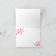 Este cartão de agradecimento de chá de noiva dobrado tem um fundo macio de cor rosa mauve com uma borda mais escura de mauve. Ao fundo, há um desenho de floreio espiral com um vestido de noiva branco na moda. Agradecimento está escrito na frente. O interior está em branco para você escrever à mão sua mensagem de agradecimento em casa. Gráficos por Riefka Design na MyGrafico