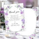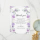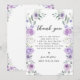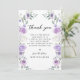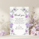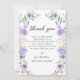 Compartilhe sua gratidão com estilo com esses cartões de agradecimento de chá de noiva florais doces e chiques, apresentando uma coroa boêmia com flores roxas e lavanda entrelaçadas com folhas de eucalipto verdes. Perfeito para uma celebração de chá de noiva elegante, esses cartões adicionam um toque sofisticado e fashion. Ideais para celebrações de chá de noiva na primavera ou verão.
