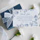 Agradeça aos convidados por terem comparecido ao seu chá de panela "algo azul" com nosso cartão de agradecimento luxuoso com listras clássicas de chambray e arte gráfica floral em azul naval.