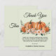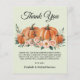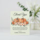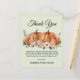 Mostre sua gratidão com este elegante cartão de agradecimento de chá de bebê. Com um lindo design em aquarela de abóboras e arranjos florais, este cartão é perfeito para expressar gratidão aos seus convidados. A escrita estilosa com um floreio em forma de coração diz “Obrigado” e “Uma pequena e doce abóbora está a caminho”, adicionando um toque encantador à sua celebração de outono. Personalize-o com o nome da futura mamãe e a data do chá para um presente único e memorável.