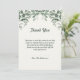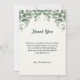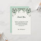 Cartão de agradecimento de chuvada de bebê folhas de eucalipto verde. A mensagem agradece os convidados por terem comparecido à chuvada.