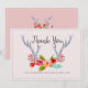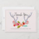 Cartão de agradecimento com galhada de veado em aquarela e elementos florais para chuveirinho de bebê menina. Informações pessoais no verso. Envie um e-mail para JMR_Designs@yahoo.com se precisar de ajuda ou tiver algum pedido especial.
