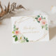 Este cartão de agradecimento de chuveirinho de noiva geométrico dourado floral é perfeito para um chuveirinho de noiva moderno. O design apresenta lindas rosas pintadas à mão em branco, rosa e blush e um toque de verde, adornando molduras geométricas douradas, inspirando beleza artística. Esses cartões podem ser usados para um casamento, chuveirinho de noiva ou qualquer evento especial.