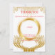 Expresse gratidão em um estilo atemporal com este cartão de agradecimento de design elegante em dourado sobre um fundo branco limpo. Com detalhes ornamentais luxuosos em dourado, este cartão personalizável é perfeito para temas de casamento clássicos, modernos ou minimalistas e complementa seu conjunto de papelaria coordenado.