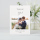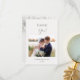 Uma foto personalizada na parte frontal, texto de agradecimento e um design de rosas 3D brancas na parte traseira.