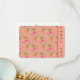 Belo design floral com flores cor-de-rosa e folhas verdes e listras ao fundo. Um item indispensável para a sua coleção floral ou de primavera.