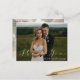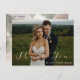 Lindo cartão de agradecimento de foto de casamento com sobreposição de escrita "obrigado" branca moderna e elegante. Apresenta fotos da frente e do verso.