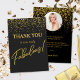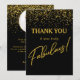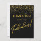 Complete seu fabuloso aniversário com este elegante cartão de agradecimento da Fabulous Birthday Photo Collection! Desenho deslumbrante em preto e dourado com efeito impresso sofisticado cria uma impressão duradoura. Um lembrete memorável que seus convidados vão querer guardar! Personalize com sua foto e mensagem sincera no verso, usando o texto de agradecimento sugerido ou criando sua própria nota pessoal. Combine com convites, cartões de RSVP, faixas, artigos para festa, guardanapos, porta-copos, pratos, copos e decorações combinando para uma celebração coesa. Disponível em formatos impressos ou para download. Para assistência de personalização, entre em contato com remidevandesigns@gmail.com. RemideVan©