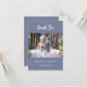 Celebre seu dia especial e expresse sua gratidão sincera com nossos Cartões de Casamento com Foto Personalizada, elegantemente projetados com um fundo azul poeirento sofisticado e moderno. Perfeitos para compartilhar suas memórias favoritas de casamento, esses cartões são elegantes e pessoais, oferecendo uma maneira única de agradecer aos seus convidados. Personalize e adicione sua foto e nota de agradecimento. Texto branco.