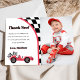 Cartão de agradecimento de foto de festa de aniversário vermelho de carro de corrida