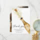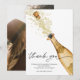 Nosso cartão de agradecimento de foto de noivado de casais com champanhe alegre apresenta um design moderno com uma garrafa de champanhe falsa dourada. Adicione sua foto favorita no verso do cartão e pronto. Este cartão é a maneira perfeita de expressar sua gratidão aos seus entes queridos que ajudaram a tornar sua festa de noivado ainda mais especial.