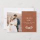 Compartilhe sua gratidão com este Cartão de Agradecimento de Foto em Terracota Rústica, apresentando tons terrosos quentes e uma foto personalizada. Perfeito para casamentos, chá de noiva ou qualquer ocasião especial! Perfeito para um casamento inspirado em boho. Itens correspondentes em nossa loja Cava Party Designs.