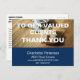 O cartão de agradecimento de imóveis azul moderno apresenta texto moderno e detalhes personalizados em bloco azul. O verso do cartão tem um modelo de endereço e uma mensagem que pode ser personalizada. Um cartão de agradecimento perfeito para agentes imobiliários, empreiteiros e construtores. Por favor, clique no botão personalizar para personalizá-lo com seu próprio texto.