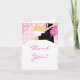 Cartão de agradecimento de noiva e noivo moderno apresenta uma noiva e um noivo em um fundo floral cor-de-rosa! Convites de chá de panela e selos e adesivos correspondentes disponíveis em nossa loja em www.celebrateitinvites.com. Também disponível em uma grande variedade de cores. Personalize com suas informações e está tudo pronto! ©Jessica Weible