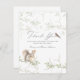 Delicar Cartões de agradecimentos de Chá de fraldas de Esquilo Florestal de Woodland. Imagem de Script de Caligrafia Personalizada "Obrigado". Pequeno sotaque de pássaros da floresta.