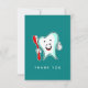 Cartões de agradecimentos plano com uma ilustração de um estilo de desenho animado, grande dente branco sorrindo alegremente segurando uma escova de dente vermelha e dando aos polegares uma placa para cima. Mensagem personalizada no verso.