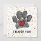 Impressão de pata de cão e aquarela cardíaca em vermelho, preto e cinza. Pinta em segundo plano. Cartões de agradecimento personalizados.