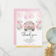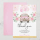 Cartão de agradecimento exclusivo para drive-through com rosas cor-de-rosa em aquarela elegantes, folhagens exuberantes e um carro antigo chique