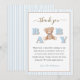 Cartão de agradecimento do chá de bebê menino do ursinho de pelúcia aquarela fofo.