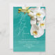 Cartão do dia das mães com orquídeas com mensagem de agradecimento. Letras grandes no topo. Exemplo é "Amo você Nanna" com parágrafo para sua mensagem. Orquídeas brancas realistas decoram cartões azul-esverdeados com fundo de água do oceano. Mais água está no verso, e o design vem como download instantâneo, bem como impresso com papel de alta qualidade.
