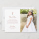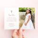 Este simples e na moda, falso ouro rosa e branco Primeiro cartões de agradecimentos da Comunhão Sagrada apresenta tipografia de guião caprichosa, estilo vintage e uma cruz falsa de ouro rosa com sua foto. Um olhar elegante e clássico minimalista que ainda é único e contemporâneo.