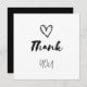 Obrigado com um coração... nos ame. Design de script casual. Preto & Branco. Ideal para um chá de fraldas, ou para a festa de aniversário de uma criança.
