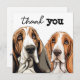 Bonito bronzeado e branco, castanho e branco, rostos de basset expressivos em seus cartões de agradecimento que você pode personalizar. Altere a fonte e a cor da fonte e o que você quer que seus cartões digam na frente e no verso. Pegue alguns presentes também. Estes são fantásticos para fãs da raça dos cestos e todos os amantes dos bassets. O reverso desta placa apresenta um limite e espaço diferentes para as suas mensagens e assinatura.