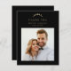Expresse a sua gratidão com o cativante "Casamento Dourado de Lua Obrigado Cartões", colocado sobre um fundo negro profundo e encantador. A lua crescente do ouro e uma foto personalizável do casal tomam palco central, simbolizando gratidão e lançando um brilho celeste contra a canvas da meia-noite que espelha a magia de seu dia especial.