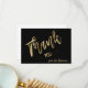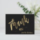 Crie um cartão personalizado e esplêndido, chique, minimalista e simples obrigado para seu próximo casamento. Este obrigado que você tem uma placa plana apresenta um roteiro de caligrafia espaçoso e bonito escrevendo em letras falsas de folha de ouro com um fundo preto no quadro. Você pode personalizá-lo facilmente com seu próprio texto e personalizá-lo de acordo com o seu gosto. Observe que o trabalho de arte de "Obrigado -Você-" não pode ser editado. Nota complementar: O impressão de folha de ouro é um falso efeito de folha de ouro. Não é a folha de ouro a quente.