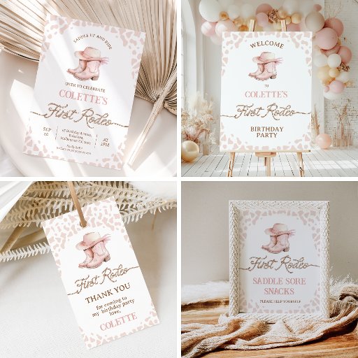 Dusty Pink Cowgirl Boot First Rodeo Birthday DecorCriado por Sugar puff kids