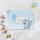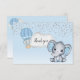 Obrigado seu convidado com este adorável elefante bebê com "Obrigado" em uma nuvem e um elefante fofo em um balão azul de ar quente com pano de fundo de confetti prateado. Nas costas, um elefante fofo num balão de ar quente azul com um fundo de gradiente azul e branco.