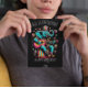 Uma carta vibrante com uma cena surreal de um elefante majestoso tocando violão em um design psíquico.