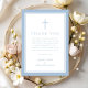 Cartão De Agradecimento Elegant Baby Blue Religious Cross Baptism