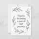 The front of the card features an elegant arc of flowing botanical ribbons surrounding a refined serif “Thank You”, creating a beautifully balanced and timeless center focal point. Delicate, detailed leaf structures sweep gracefully across the top and bottom, producing a full-card artistic composition that feels both clean and sophisticated.