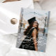 Chic graduation thank you card with graduate photo, elegant script, and school name and class year. The text are on top of your photo.