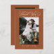 Modern and elegant wedding thank you card featuring a script text with swashes and dots that says "thank you" on the top. The background is terracotta.