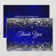 Cartão De Agradecimento Elegante azul real com brilho prateado falso