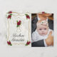 Agradezca a sus amigos y familiares por asexistal bautismo de su bebé o por darle un regalo con esta elegante tarjeta de agradecimiento de bautismo de rosa roja y cruz dorada. El fondo apresenta a un hermoso diseño de mármol blanco. Ponga una foto de su bebé en el anverso y escriba una nota de agradecimiento en el reverso.