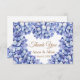 Este elegante cartões de agradecimentos de casamento floral de hydrangea azul é perfeito para um primavera ou casamento de verão. O clássico design de aquarela floral hidrangea com pasta mole azul e folhas verdes.