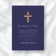 Elegante Marinho Azul Religioso Cruzado Primeiro Cartões de agradecimentos Comunitário.