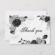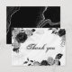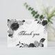 Cartão De Agradecimento elegante prata e flores pretas botânicas