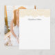 O roteiro tradicional é combinado com uma fonte simples e atemporal, de acordo com a etiqueta adequada para cerimônias religiosas. Este design apresenta um padrão de renda branca no verso do convite, com um fundo dourado suave e fosco. Sofisticado, clássico, atemporal e simples - perfeito para um casamento elegante ou de gala. Belas cores preta, branca, dourada e marfim.