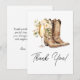 Celebre a noiva com estes agradecimentos de chá de noiva charmosos Botas & Bubbly, onde o rústico encontra a elegância. Com um par de botas de cowboy aquareladas e uma taça de champanhe florescendo com flores cremosas, este design simples, porém sofisticado, define o tom para uma celebração elegante. Perfeito para chás de noiva country-chic ou temáticos do oeste com um toque borbulhante!