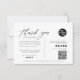 Aprimore o marketing de sua pequena empresa com nosso elegante e moderno Cartões de agradecimentos de negócios minimalista preto e branco. O design mínimo desse cartão personalizado de apreciação de negócios é perfeito para o proprietário de negócios contemporâneo. Diga adeus às cartas tradicionais e entre no futuro com um código QR que se conecta diretamente aos seus perfis de mídia social e ao seu site. Nosso cartões de agradecimentos de negócios é mais do que apenas um símbolo de apreciação; é uma ferramenta de marketing estratégico. Com uma estética simples, mas sofisticada, em preto e branco, seu logotipo e sua marca ocupam o palco central, ao mesmo tempo que aumentam sua presença nas mídias sociais, e dirigem ordens e compras. Todos os ícones de texto e de mídia social apresentados neste cartões de agradecimentos corporativo exclusivo são personalizáveis para atender às suas necessidades específicas de negócios. Este cartões de agradecimentos de na moda é uma excelente oportunidade de marketing que fala muito sobre o compromisso de sua empresa com estilo e inovação.