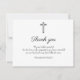 cartões de agradecimentos cristão, monocromático e tradicional com texto preto com fundo branco, fontes de escrita artística e um design de cruz minimalista. Uma foto do seu ente querido ou uma mensagem pode ser adicionada no verso. Para adicionar, clique na opção 'personalizar mais' após 'Personalizar' e clique em 'Plano de fundo'.