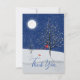 Uma lua cheia brilhante brilha sobre a neve branca enquanto uma árvore solitária (com uma fita vermelha amarrada em volta dela) espera pela manhã de Natal. É uma cena nostálgica da estação de inverno. Mais do design está no verso com seus agradecimentos e assinatura. Bênçãos!
