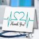 Enfermeira com batimento cardíaco simples Cartões de agradecimentos médico de saúde. Cardiopatias batiam no EKG, impressão de batimento cardíaco, excelente para enfermeiro, médico, cardiologista, veterinário! Você pode usar isso como obrigado de graduação ou para uma prática médica para os pacientes. Você não só pode mudar as cores da fonte (e o texto, é claro), como também pode mudar as cores de fundo que mudarão a coloração da linha do pulsante! Você pode combiná-lo com a cor favorita do seu médico ou enfermeiro, ou com as cores escolares, se quiser.