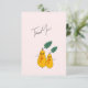 Cartões de agradecimentos com peras bonitas em fundo rosa